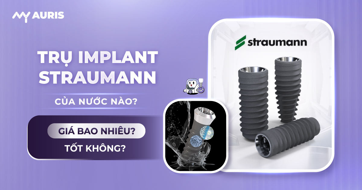 Implant with Straumann abutment (Switzerland). Straumann Implant is currently the top choice for customers who need dental restoration and have strong financial capacity. If you have any questions regarding the Straumann, please leave your information to receive detailed support from doctors at My Auris Dental.